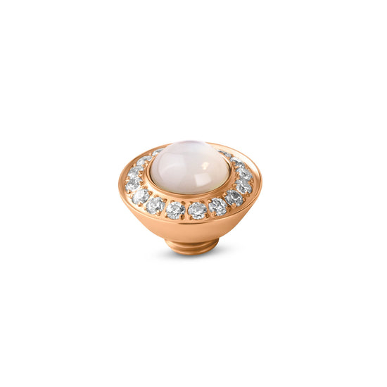 Der Melano Vivid Glam-Stein hat ein Mother of Pearl Herz und ist von edlen kristallfarbenen Zirkonia-Steinen umgeben. Diese Schönheit verleiht jedem Schmuckstück eine frische, sommerliche Note! Der Glam-Stein ist 10 mm breit und in Silber, Roségold oder goldfarbener Beschichtung erhältlich.