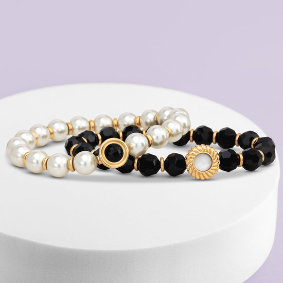 Das Melano Vivid Polar Blush Armband-Set ist eine Ode an sanfte Winterkontraste. Die Kombination aus Schwarz und Perlen ist perfekt harmonisch und wirkt zeitlos, aber mit einem Melano-Twist! Das Polar Blush Armband-Set ist in einer silber- oder goldfarbenen Plattierung erhältlich und besteht aus:
