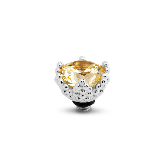 Der Melano Twisted Starlight Stein ist einzigartig, besonders durch die Art, wie der Zirkonia-Stein vom Stahlwerk gehalten wird. Wer ein Auge fürs Detail hat, sieht, dass dieser Stein mit einer besonderen Textur aus kleinen Kugeln verziert ist. Funkle wie nie zuvor! Der Starlight Stein hat einen Durchmesser von 9 mm und ist in einer silber-, roségold- oder goldfarbenen Plattierung erhältlich.
