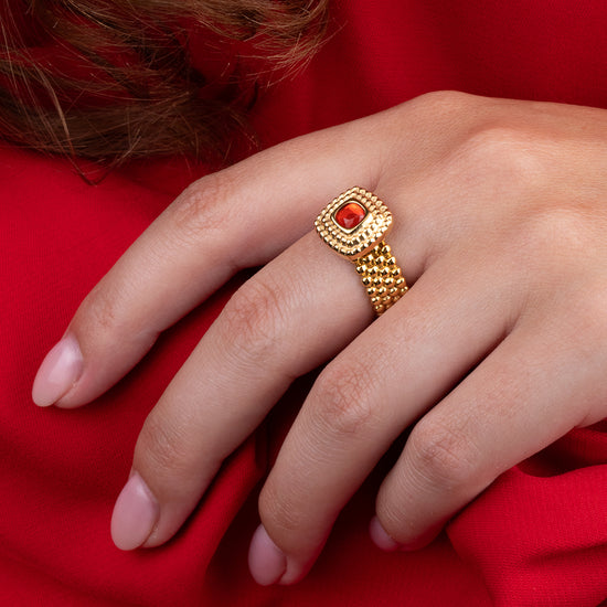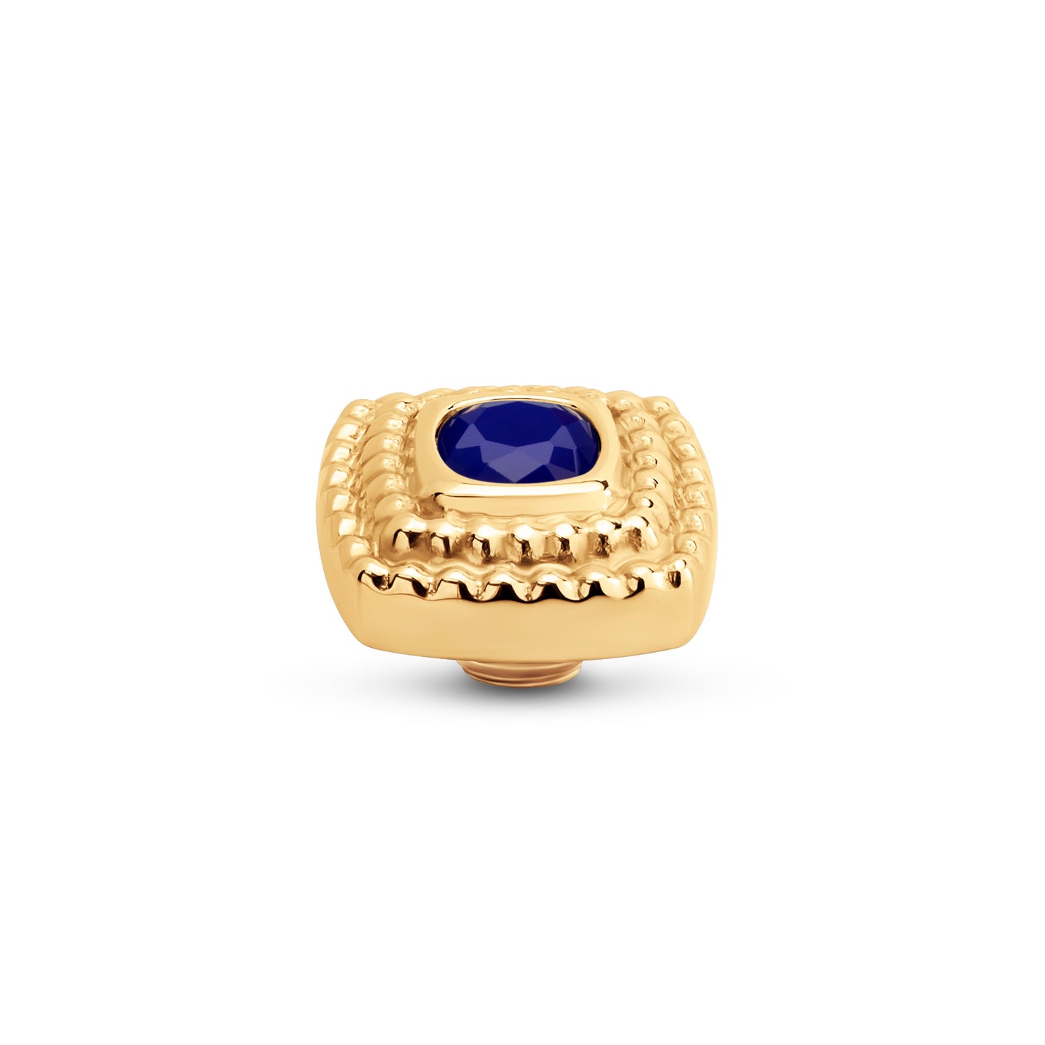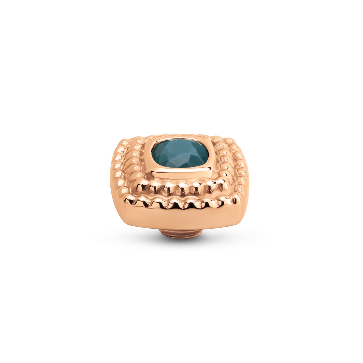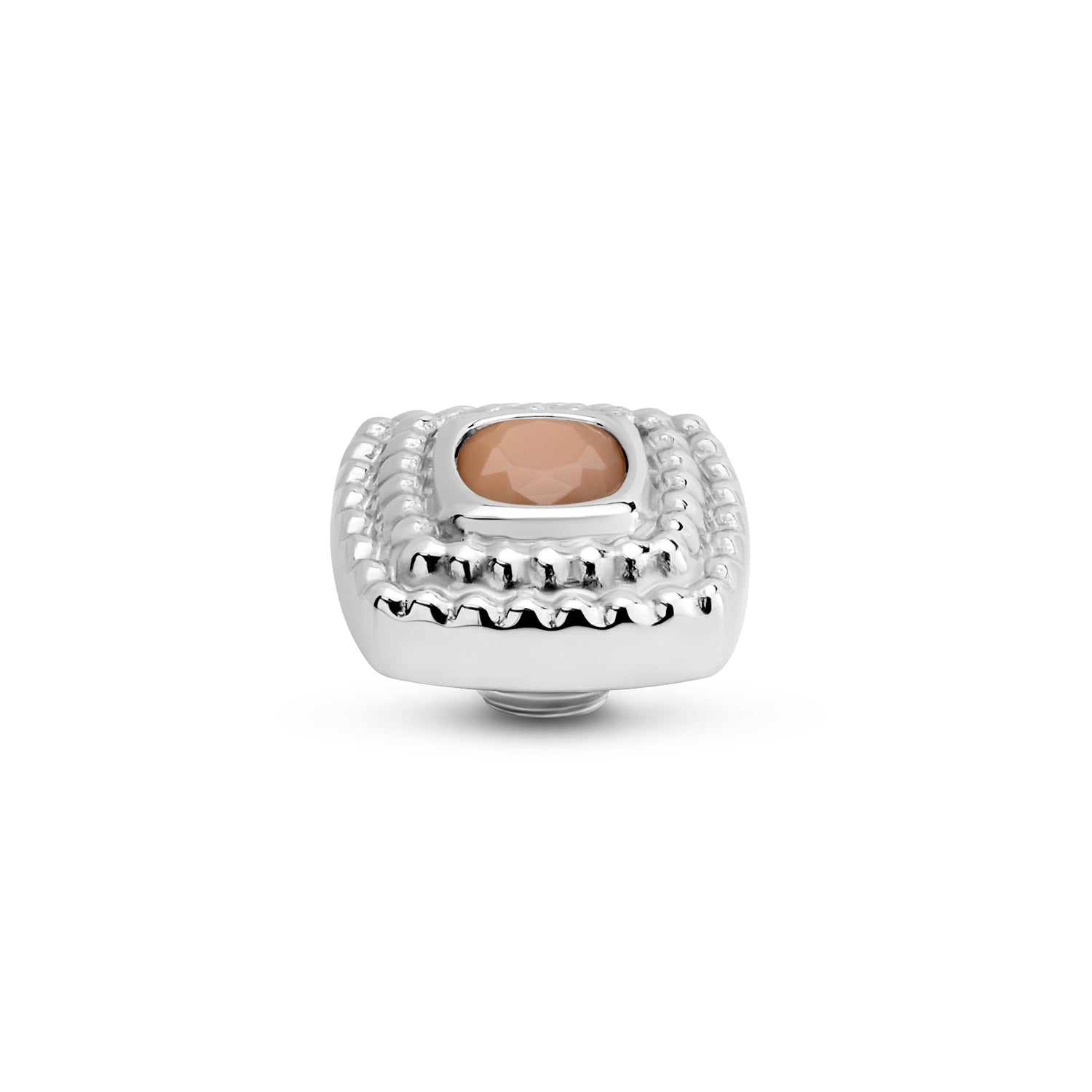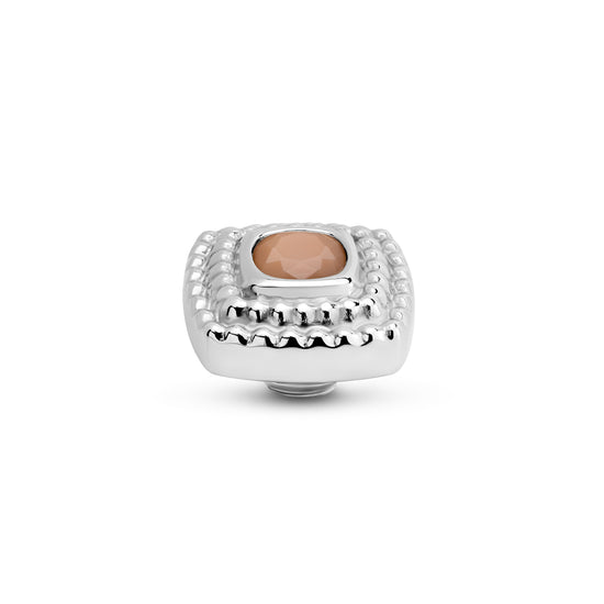 Der Melano Vivid Maze Stein hat eine weiche quadratische Form. Durch die doppelte Reihe von Kügelchen hat der Stein einen mysteriösen Charakter, wie ein Labyrinth. Der Maze Stein hat einen Durchmesser von 10 mm und ist in einer silber-, roségold- oder goldfarbenen Plattierung erhältlich.