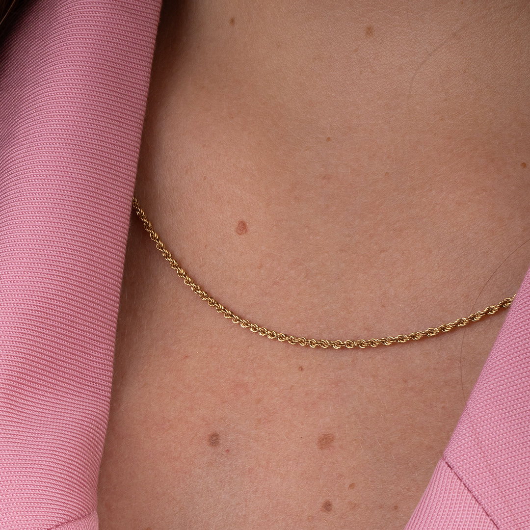 De Melano Friends Rania ketting is een waanzinnige toevoeging aan ons bestaande Friends kettingen assortiment. Deze keer een stoerder design, namelijk een rope ketting. De Rania ketting is 1,5 mm dik en is verkrijgbaar in een zilver-, rose goud- of goudkleurige plating.