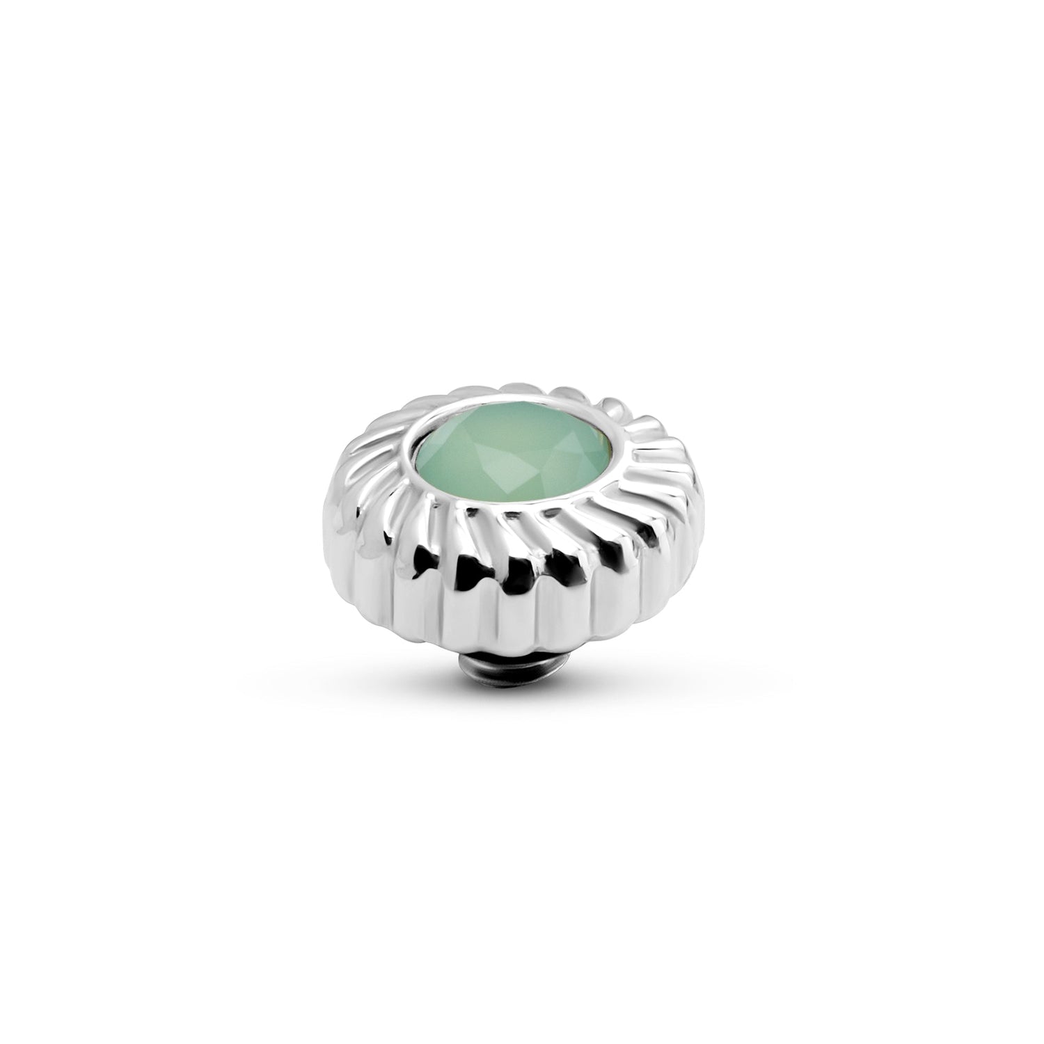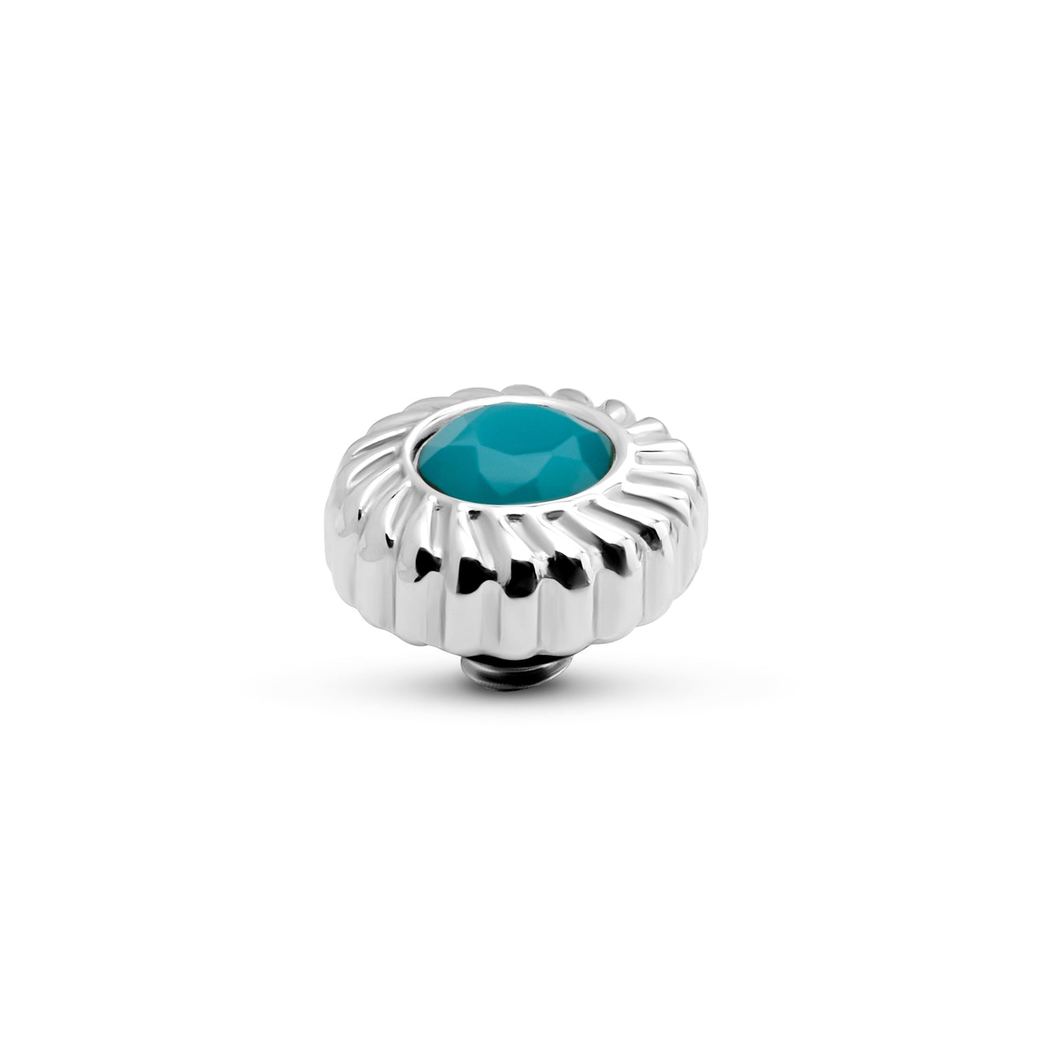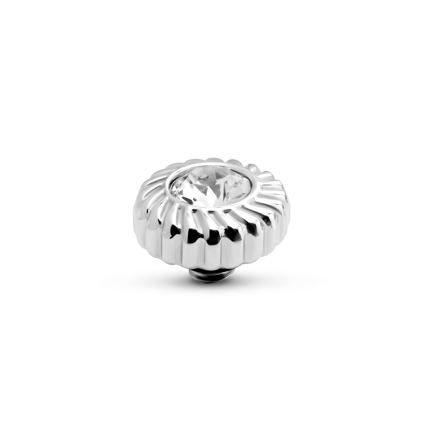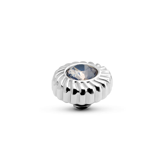Het Melano Twisted Crystal Flower steentje is voorzien van een brede rope rand. De kern bestaat uit een schitterend geslepen zirkonia steen in één van de zes beschikbare kleuren. Het Crystal Flower steentje heeft een doorsnede van 8 mm en is verkrijgbaar in een zilver-, rose goud- of goudkleurige plating.