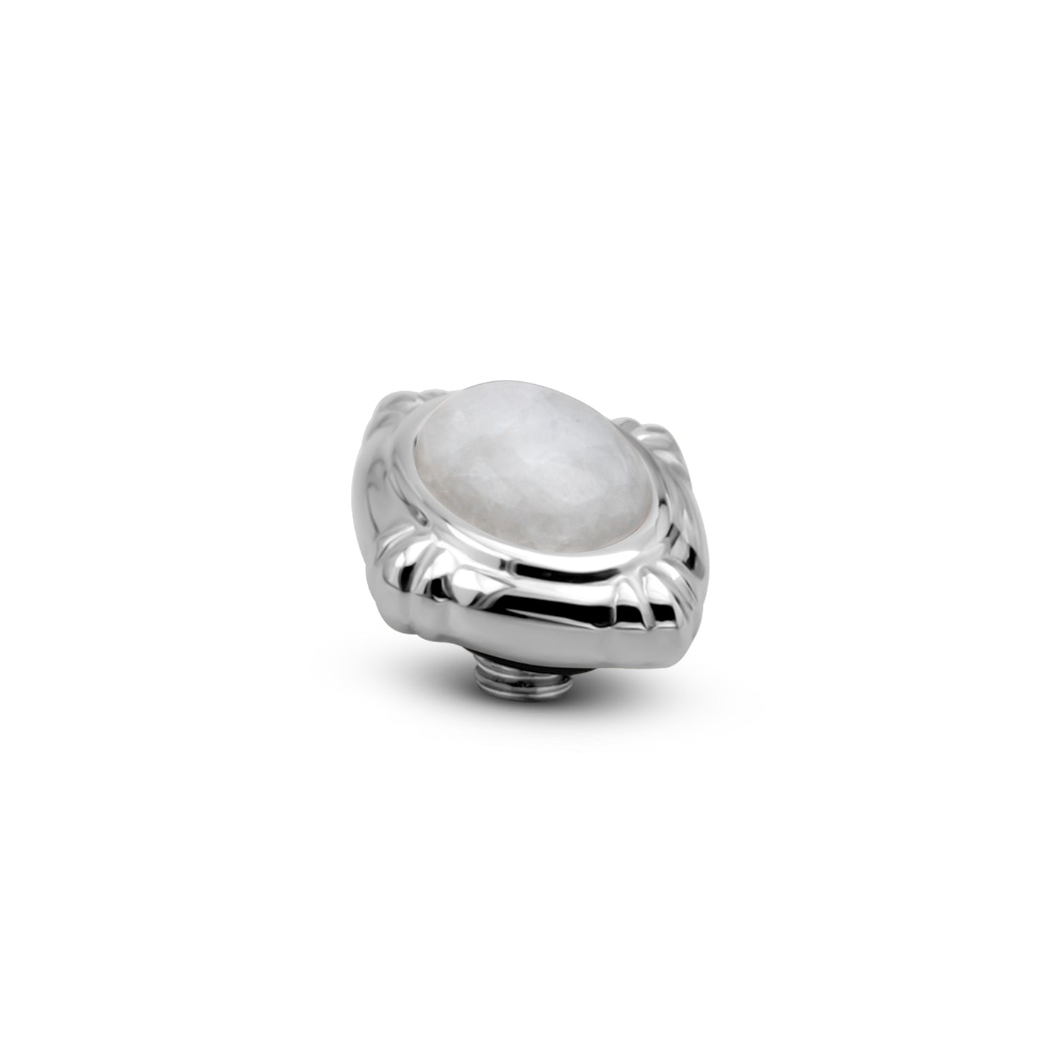 Het Melano Twisted Victorian Gem steentje straalt pure retro glam uit. De glad geslepen edelsteen wordt omlijst door een schilderijachtig kuipje. Het Victorian Gem steentje heeft een diameter van 10 mm en is verkrijgbaar in een zilver-. rose goud- of goudkleurige plating.