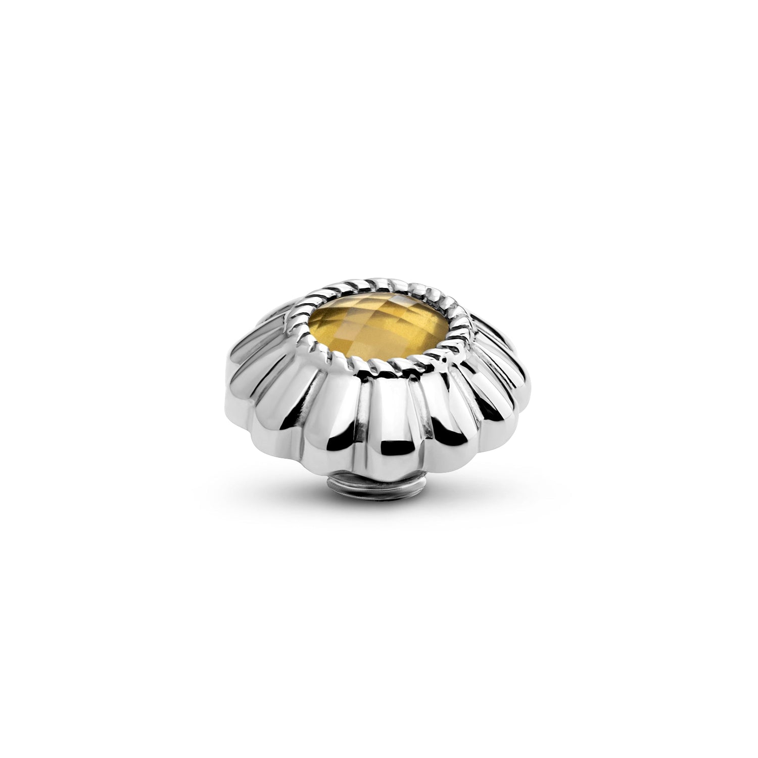 Het Melano Vivid Imperial steentje is verkrijgbaar in zes waanzinnige kleuren. Het stalen randje is extra bijzonder door de combinatie van het bloemvormige en rope patroon. Het Imperial steentje heeft een doorsnede van 10 mm en is verkrijgbaar in een zilver-, rose goud- of goudkleurige plating.